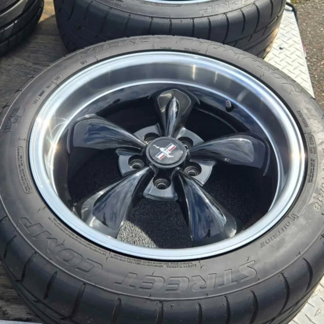 Dive into the specifications that make this set a standout among Ford Mustang parts: the wheels feature a durable powder-coated finish resistant to corrosion, while the Mickey Thompson slicks are engineered for high-performance street use with a tread pattern optimized for traction and stability. Compatibility is key—these are tailored for 2005-2009 Ford Mustang models, including Shelby GT500 if adapted, with bolt patterns matching factory specs for easy installation. No need for extensive modifications; simply bolt them on and transform your ride. For those exploring “Mustang GT wheels upgrade” or “classic Mustang rims,” this package includes everything you need, from the robust construction to the proven tire brand trusted by racers worldwide. The gentle usage—only to car shows—means these tires retain nearly all their original tread life, offering thousands more miles of enjoyment.