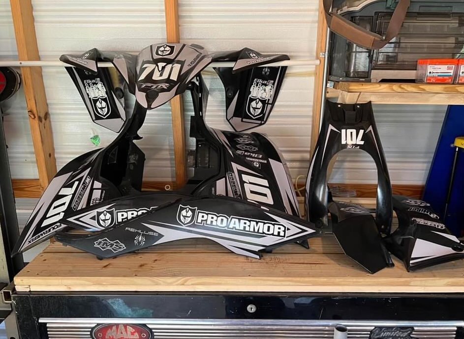 Upgrade your 2018 Yamaha YFZ450R with this like-new all black plastics set, including color-matched hand guards for a sleek, custom look.This complete 7-piece kit is in excellent condition, perfect for riders seeking durable, stylish bodywork enhancements.Ideal for ATV enthusiasts looking to refresh their quad’s appearance without breaking the bank.