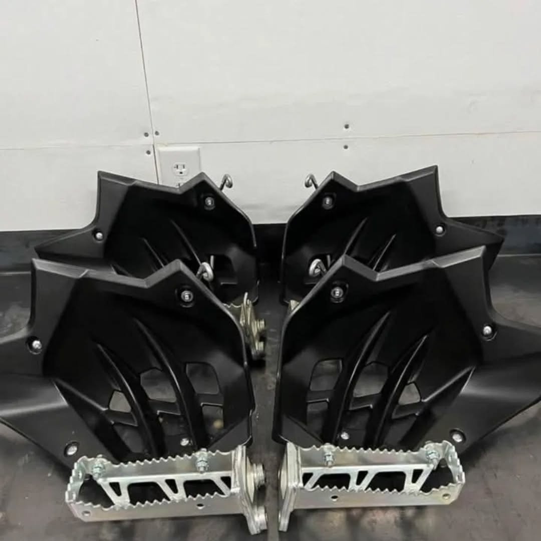 Additional essentials include a gas tank for $40, ensuring reliable fuel storage for long rides, and lighting options such as used headlights at $50, taillight with housing at $75, and taillight without housing at $50. These Yamaha YFZ450 headlights and Raptor 700 taillights are crucial for visibility during night rides or low-light conditions. Don’t forget the pegs with heelguards at $50 each (two sets available), which offer superior grip and foot protection, enhancing safety on your Suzuki LTR450 or similar quads. Wheels and tires are offered at $300, providing excellent traction for Yamaha YFZ450 tires or Raptor 660 wheel sets, suitable for various terrains from sand dunes to motocross tracks.