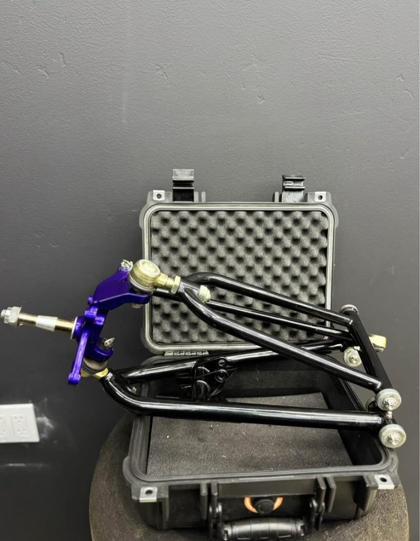 For reliable power delivery, the kit features a used Fire Power battery that’s been tested for performance, offering dependable starting power without the high cost of a new unit—perfect for budget-conscious riders upgrading their Yamaha Raptor electrical system. The star of the suspension upgrades is the new Alba Racing +2 arms, equipped with tie rods, tie rod ends, ball joints, and fresh bushings, all powder-coated in gloss black and paired with OEM spindles for precise handling and extended reach. These Yamaha YFZ suspension parts are engineered to absorb shocks from rough terrain, improving control and reducing rider fatigue on long rides.
