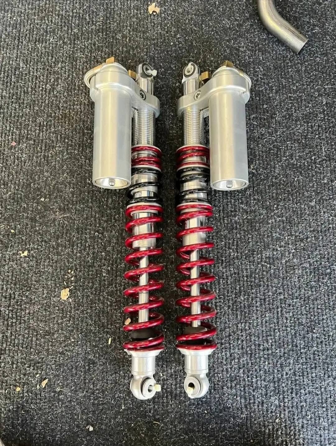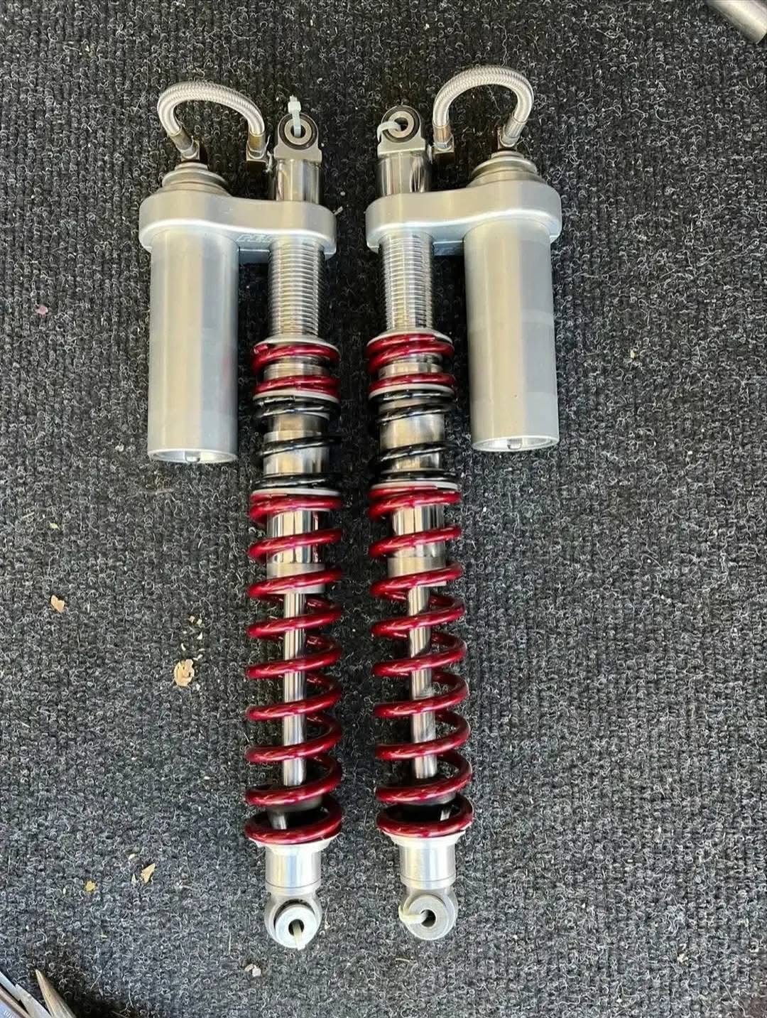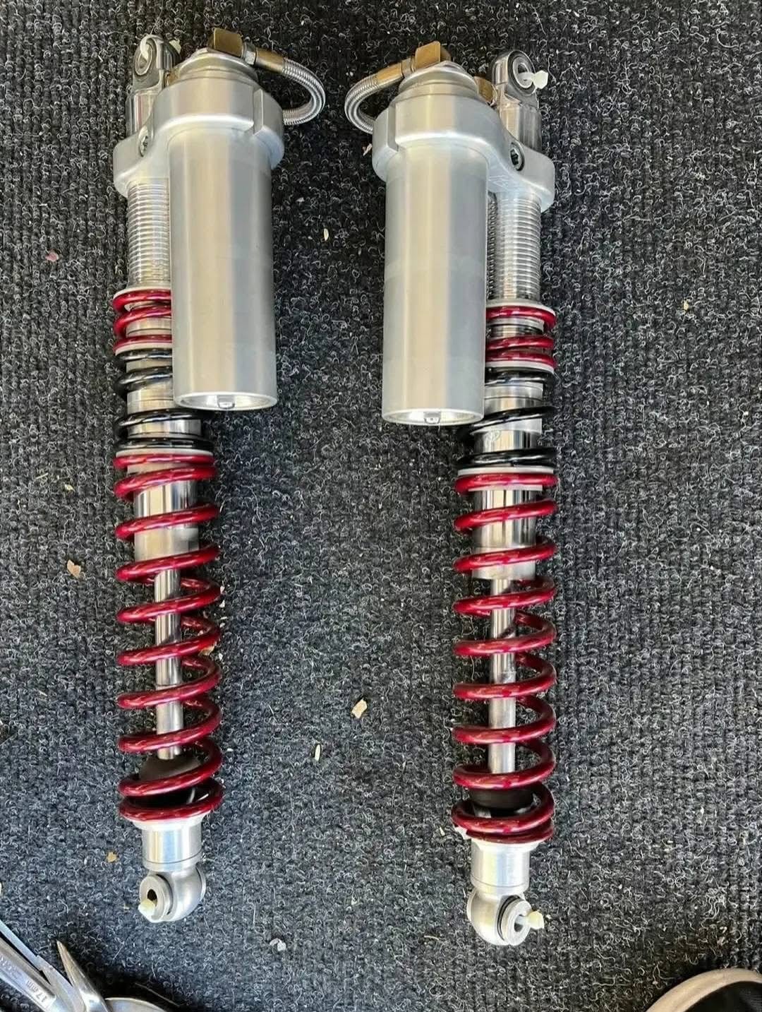 Upgrade your ATV’s suspension with this set of PEP long travel shocks, recently serviced and with only one ride on them. Featuring powder-coated springs in eye-catching Illusion cherry and gloss black, these shocks are pulled from an 89 TRX250R and ready for action. Available for shipping at $750, perfect for enhancing your off-road performance.