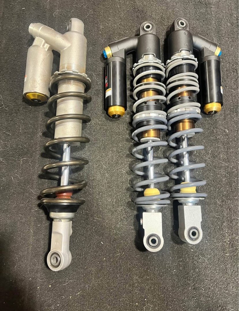 Upgrade your Yamaha YFZ or Raptor ATV with these high-performance used revalved stock shocks, designed to deliver superior handling and durability on the track or trail. Featuring a triple rate adjustable spring kit, these shocks allow for precise tuning to match your riding style, whether you’re an intermediate MX rider or tackling rough terrain. The extended bladders address a common issue with stock shocks, which are prone to leaking, ensuring longer-lasting performance and reliability. Set up for a 220 lb rider, these shocks have seen minimal use—only ridden twice lightly before the customer sold the bike—making them an almost-new option at a fraction of the cost of brand-new parts.