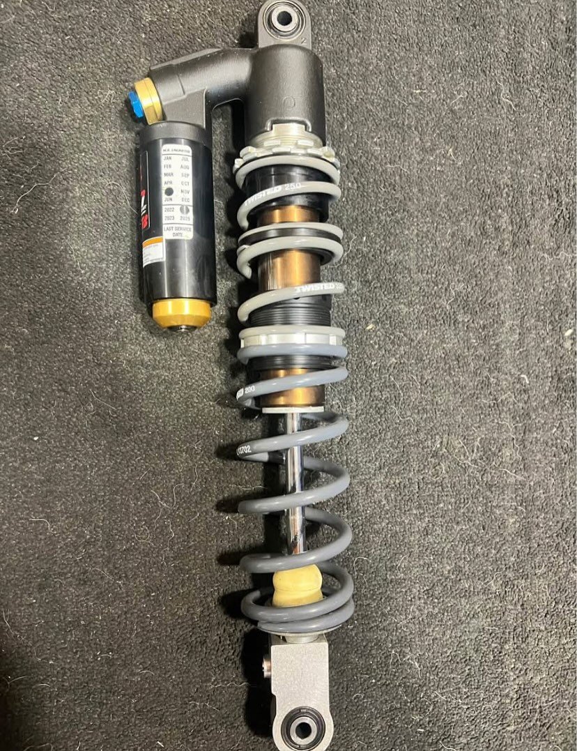 These lightly used revalved stock shocks come equipped with a triple rate adjustable spring kit and extended bladders to prevent common leaks in stock setups. Tuned specifically for a 220 lb MX intermediate rider, they’ve only been ridden twice before the bike was sold. An excellent, affordable upgrade for enhancing suspension performance on your Yamaha YFZ or Raptor ATV.